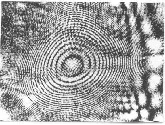 The bimetallic membrane has Al on the upper side and Si on the bottom side. The Al thickness is 4 (and 1)m and the Si thickness is 10m. The bimetallic membrane is square and its side length is 5mm. A commercial IR lamp was used for heating the membrane. Results of the deflection measurement of the membrane show interference images like Figure 5. The shape of the rings is due to the fact that the maximum deflection point lies in the center of the membrane. Then, with a TV-video system, we could count them and it was possible to measure the rings’ formation time.