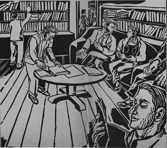 En esta última figura, la representación es muy similar a las fotografías que se han conservado de la biblioteca de la ULRM, salvo por un elemento, estas últimas no incluyen sujetos de carne y hueso. Al contrario, el grabador de la Unión de Obreros Artes Gráficas convierte dicho lugar en el centro de las sociabilidades masculinas. Los trabajadores, cultos, sobrios y vigorosos, empleados y obreros en unión multiclasista, conversan, leen en silencio, estudian. Esta idealización combinó de ese modo una proyección sobre lo que debían ser los hombres de las artes gráficas, con la ausencia de aquellos elementos que iban cambiando rápidamente en este ámbito laboral. La idealización de un modelo construido con base en una lógica que integraba pasado y futuro, como hemos visto, al mismo tiempo implicaba una defensa frente a los cuestionamientos del presente.