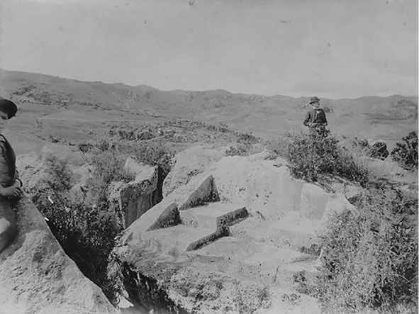 Pruebas fotográficas en Sacsayhuaman. Fotografía de Max T. Vargas, 1897.