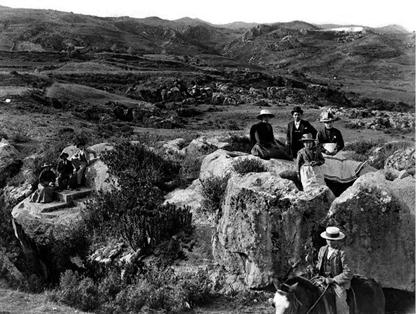 Grupo familiar en un paseo a Sacsayhuaman, hacia 1900-1905.