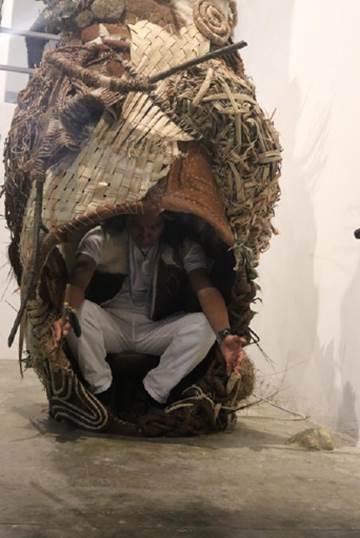 La mediación es un trabajo constante, un trabajo que, más que buscar resolver los conflictos, busca transformarlos escuchando y hablando alrededor de la tulpa, limpiando con la waira, cantando y danzando. Los dispositivos para mediar pa-labrar están siendo creados por Jairo Palchucán y los integrantes de ASOVISNA, Luis Fernando Álvarez y Blanca Valencia. Las obras profundizan en la mediación y tramitación del dolor a través del arte, en prácticas rituales o festivas (Figura 4).