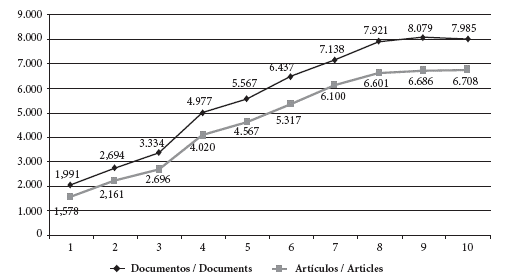 En la figura 3 puede apreciarse la última instantánea disponible de este iceberg, la cual incluye el artificioso efecto SciELO, con cuya "transferencia" se duplicó en dos años la producción internacional para beneplácito de todos los creyentes en la punta del iceberg.10