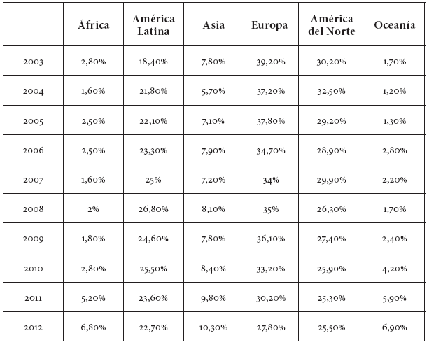 Figura 5: Colaboración regional comparativa 2003-2012.