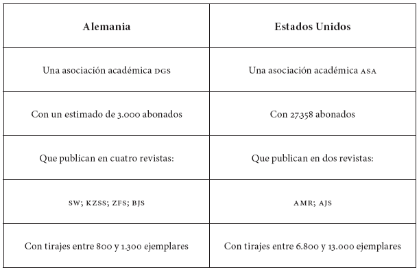 Figura 7: Comparativo variables del mercado editorial de la sociología alemana y estadounidense.