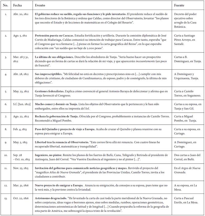 Sin embargo, no cabe centrar nuestro argumento en la incompetencia estatal, pues a partir de 1801, y particularmente entrado 1806, Caldas será beneficiado con sucesivos cargos creados expresamente para él, entre ellos el de encargado de la Sección de Astronomía y Geografía de la Real Expedición Botánica del Nuevo Reino de Granada. Más aún, su roce con la burocracia sobrevino veinte meses después del furor botánico que a mediados de 1799 lo distanció por primera vez de su trabajo cartográfico.