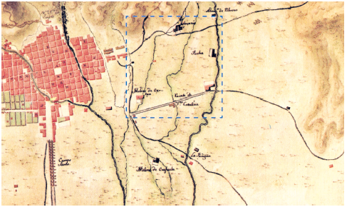 Figura 1: Detalle del Plano de Bogotá por Francisco Cabrer, 1797.