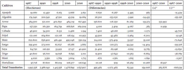 De acuerdo con el censo agropecuario del 2014, el 56,7 % del territorio continental de Colombia corresponde a bosques naturales. En las condiciones actuales del planeta, la tenencia de este recurso es estratégica y debería ser considerada una fuente importante de valor agregado ambiental. Este hecho, sin embargo, ha sido desatendido por los gobiernos. El área destinada a usos agropecuarios es del 38,6 % (tabla 2), de la cual, la mayor parte (22,2 %) se dedica a pastos para el ganado; luego se encuentra el área en rastrojo, que no se cultiva pasados tres años (8,6 %); y finalmente el área agrícola, que tiene la menor proporción (7,6 %). Esta distribución muestra que la ganadería, que ocupa tres veces el área de la agricultura, no se corresponde con la generación de valor agregado por ambos subsectores; la primera ha generado el 38 % en promedio y la segunda el 62 % en lo que va corrido del siglo XXI.50 Esta última tendencia ha sido constante durante el siglo XX y ha desatado una lucha permanente por la tierra entre grandes propietarios ganaderos y pequeños agricultores, en la cual el ganado y el territorio que este ocupa son instrumentos de dominación que han profundizado un tipo de crecimiento regresivo de bajo valor agregado.51 En el área de cultivos del último censo se destaca la presencia de los agroindustriales con un 2,7 % del área total, mientras el resto queda como otros cultivos con un 3,7 %.