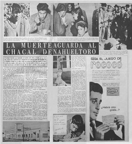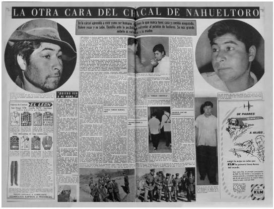 Si bien para ese entonces (30 de abril de 1963) buena parte de la prensa chilena apuntaba a destacar todavía los aspectos inhumanos del crimen,51 muchos medios nacionales (Clarín, El Mercurio, La Tercera de la Hora) recogían la dualidad entre bestia y hombre que se había evidenciado con el paso de los años.52 Aunque se reconocía y destacaba tal transformación, el medio que explicitó con mayor claridad y fuerza dicho cambio fue precisamente la revista Vea, que se encargó a lo largo de sus reportajes de ir construyendo una nueva figura a través de sus páginas, pues el Chacal pasó de ser victimario a una víctima de la sociedad.