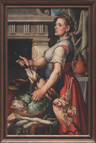 - Aertsen, Pieter. La cocinera. 1559. Óleo sobre tabla. Museos Reales de Bellas Artes, Bruselas. 🠔