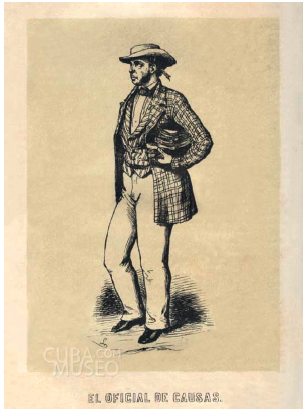 El corredor, el médico, la vieja curandera, el tabaquero, el oficial de causas, el maestro de escuela, el litigante, y todos los personajes allí recreados por Landaluze, estaban desprovistos de carácter e idiosincrasia. Además, sin un ambiente identifiable, no conseguía distinguirse la correspondencia de su elección y forma de representación, con la aspiración enunciada en el título del álbum y en la introducción antes referida (figura 4). Esto, junto a la gran ironía de que no eran pintados por sí mismos sino por otros que se asomaban desde el desconocimiento medular y desde circunstancias formativas y vivenciales muy distantes de aquella realidad de Cubanos (nótese el uso constante de la mayúscula con un sentido de énfasis) que se pretendía representar.
