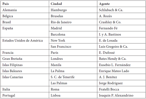 Dada su naturaleza extra americana, esta segunda agrupación dio otra complejidad a la geografía del negocio. Llama así la atención que Pérez manifestara tener puntos de suscripción en Portugal e Italia, países con los cuales las relaciones comerciales no relucían, pero destaca más aún que se expusieran puntos en los archipiélagos balear y canario, así como en Manila, un hecho que, más allá de su veracidad o de la fluidez de esta posible relación, enfatizaba el deseo de abarcar toda la comunidad hispanohablante.