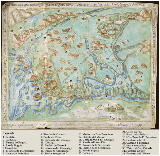 Figura 2: "Pintura de las Tierras, pantanos y anegadizos del pueblo de Bogotá", 1614.