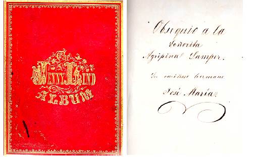 Jenny Lind (1820-1887), que recibió el apodo de "The Scottish Nightingale" (el ruiseñor escocés), fue una de las personalidades femeninas más célebres del siglo XIX en Norteamérica y Europa, tras una exitosa carrera operística con una gira estadounidense muy exitosa y publicitada que incluyó un viaje a Cuba, motivo por el cual es posible que su nombre resonara también en la prensa hispanoamericana. La visita a Cuba y el álbum de Agripina tienen la misma fecha: 1851. La gira de Lind estuvo patrocinada por el gran showman Phineas T. Barnum, y se calcula que el dinero que Lind ganó en esta gira equivaldría a unos 20 millones de dólares de hoy.13 Durante su carrera, contó entre sus amigos y admiradores a Hans Christian Andersen, Felix Mendelssohn, Frédéric Chopin y Robert y Clara Schumann. La reina Victoria se convirtió tanto en una fanática como en una amiga cercana. El álbum de Jenny Lind refleja su popularidad en la cultura norteamericana de mediados del siglo XIX y todavía hoy pueden encontrarse álbumes con su nombre a la venta en diversas plataformas en línea. Además de álbumes, se fabricaron muñecas de Jenny Lind. El National History Museum de Washington, por ejemplo, cuenta entre su colección con una caja de paper dolls (muñecas de papel) que se vendían durante la década de 1850. La muñeca de papel, al igual que las imágenes del álbum, venía acompañada con vestidos intercambiables que representaban los diferentes personajes de la ópera encarnados por la soprano escocesa. Regan Shrumm analiza estas representaciones en un artículo para el museo14 y establece que las muñecas de papel y otras imágenes de Lind, más que reflejar su persona física o su fama mundial, retrataban un ideal para la mujer burguesa promedio. Lind aparece entonces como una mujer respetable sobre la cual proyectar una serie de valores deseados y no como la cantante de ópera famosa e independiente que fue.