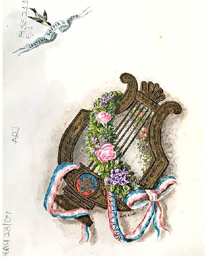 Por último, quisiera señalar el carácter móvil de los motivos del álbum. Mientras que el de Lastenia registra la vida política y cultural en su estadía en Bogotá durante los primeros años de la década de 1880, con la muerte de su esposo, el cuaderno pasa a ser un receptáculo de textos en expresión de condolencias a la reciente viuda. José Antonio Soffia muere en el momento en que se disponía a trasladarse con Lastenia desde Bogotá a Buenos Aires, su siguiente destino diplomático.