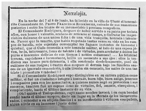 Figura 9: Recorte de necrológica del comandante Proto Francisco Rodríguez.