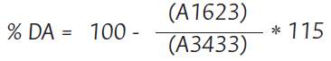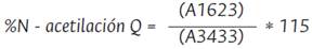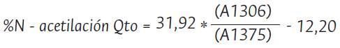 La determinación del grado de desacetilación (% DA) para quitina está dado por la Ecuación 3: