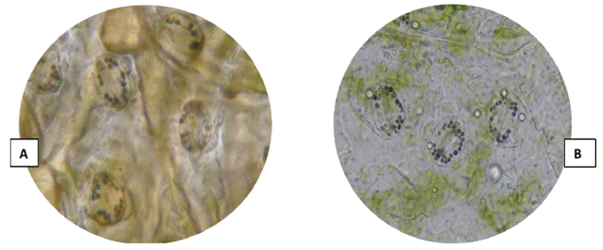 Figure 3: (A) Chloroplasts of the Kuchipa Ismay landrace. (B) Chloroplasts of the Huayro moro landrace.