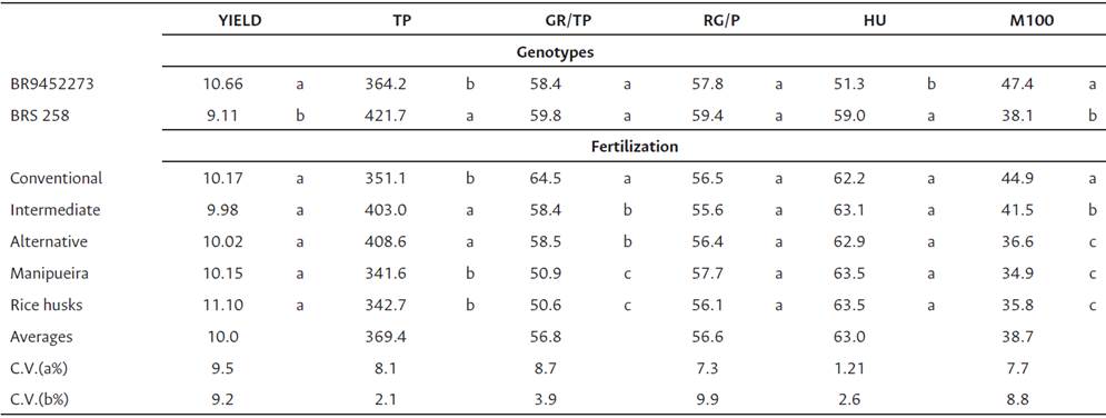 *In columns, averages followed by the same letter did not present significant differences according to the Tukey Test at 5 % of probability.