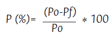 Dónde: P: pérdida de peso; Po: peso antes del almacenamiento (g); Pf: peso en cada intervalo de tiempo (g).