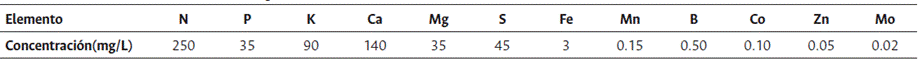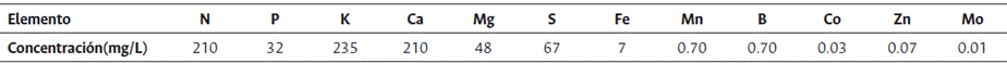 Tabla 1: Formulación 1, concentración (en mg/l) de nutrientes