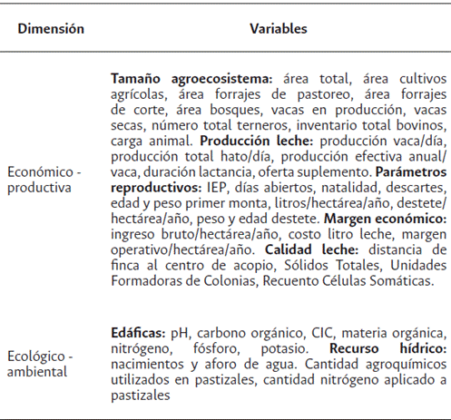 Tabla 1: Variables para tipificar los agroecosistemas de producción bovina doble-propósito