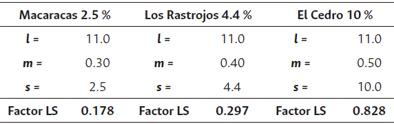 Tabla 6: Valor del factor LS calculado a partir de datos obtenidos de campo