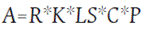 A= pérdida de suelo en t ha-1 año-1, R= factor de erosividad de la lluvia (MJ mm ha-1 h-1), K= factor de erodabilidad del suelo (t ha h ha-1 MJ-1 mm-1), LS= factor topográfico, C= factor de cobertura del terreno, P= factor de prácticas de conservación.