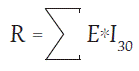 Es la sumatoria de los valores individuales de la erosividad de las tormentas durante un periodo determinado y depende de la intensidad máxima (I30) y la energía cinética de la lluvia (E).