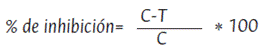 Donde C es el crecimiento diametral del hongo en el control (sin tratamiento) y T es el crecimiento diametral del hongo con el tratamiento.