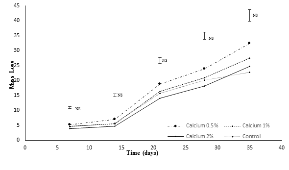 In all of the treatments, the mass loss increased over time (Figure 1).
