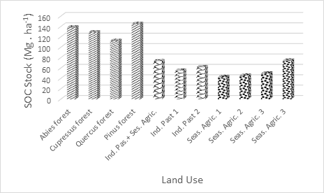 Figure 3: Soil Organic Carbon stocks in different soil uses in the municipality of San José del Rincon, Mexico