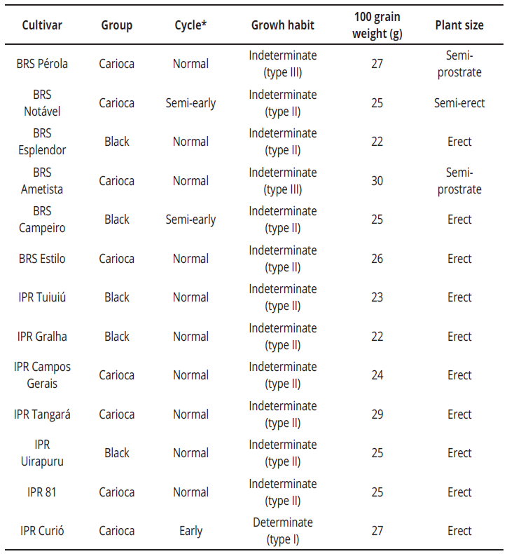 It should be noted that all the bean cultivars evaluated in this research have the genetic potential to provide a grain yield higher than the average of Brazil and Paraná, allowing the farmers to obtain greater profitability with the harvest and to assure their permanence in the agricultural activity.