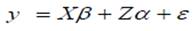 donde, y=vector de las unidades comportamentales observadas; X = es la matriz de incidencia que relacionan los efectos fijos con las características de comportamiento; P = vector de los efectos fijos de sexo, torero, picador, lugar, tipo de espectáculo, consanguinidad y edad a la tienta o lidia, para las unidades comportamentales; Z= es la matriz de incidencia que relaciona el efecto aleatorio de animal con los valores genéticos a ser calculados (Predichos); a= es el vector desconocido de efectos aleatorios; e= es el vector de residuos.