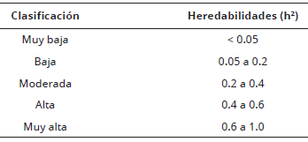 Las heredabilidades se obtuvieron mediante análisis uni-característicos, empleando la Ecuación 2: