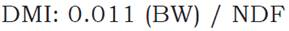 Where: Dry matter intake (DMI), kg.day-1; Body Weight (BW), kg and NDF as a fraction of food dry matter.