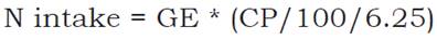 CP= percentage of crude protein in diet. 6.25 is the conversion factor from kg of dietary protein to kg of N dietary N, kg of feed protein (kg N).