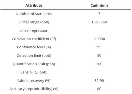 Table 1: Validation parameters for cadmium quantification