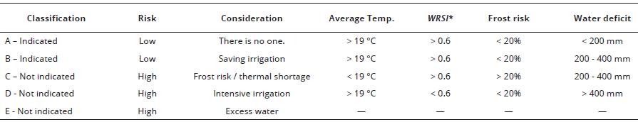 Source: adapted from EMBRAPA (2009). * WRSI - Water Requirements Satisfaction Index.