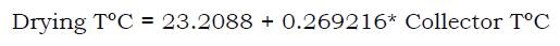 The output shows the adjustment results to the linear model to describe the relationship between Drying T°C and Collector T°C. The equation of the adjusted model is as follows (Equation 2):