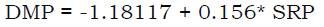 The adjustment results to the linear model to describe the relationship between DMP and SRP. The equation of the adjusted model is as follows (Equation 3):