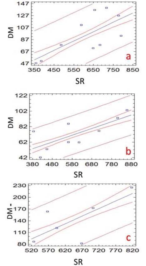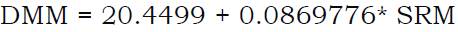 The adjustment results to the linear model to describe the relationship between DMM and SRM. The equation of the adjusted model is as follows (Equation 4):