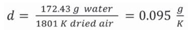 d= diameter of the air duct; V, is the velocity of the air and p, is the density of the air, resulting in a value of 0.083 kg.s-1. From this data and knowing the moisture removed from the product, the amount of water that is absorbed per kg of air entering into the dryer in the analyzed period is determined using the Equation 7.