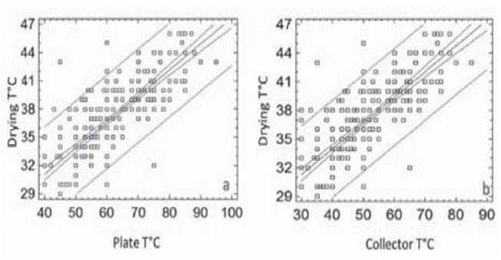 Regression analysis between drying temperature and collector temperature