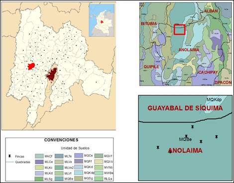 The field research was carried out in the rural area of the municipality of Anolaima-Cundinamarca, Colombia during the first half of 2015, in six farms under semi-ecological and conventional systems with an approximate extension of 1 ha, exclusively dedicated to plantain cv. Dominic Harton.