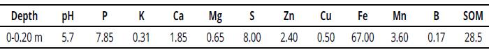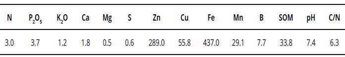 1Chemical attributes include measurements of nitrogen, phosphorus pentoxide, potassium oxide, calcium, magnesium, sulfur and organic matter (g.L-1), zinc, copper, iron, manganese and boron (mg L-1), pH and carbon/ nitrogen ratio