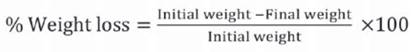 The percentage of weight loss was determined by gravimetric analysis using digital analytical balance. Percentage of weight loss was calculated using Equation 1.
