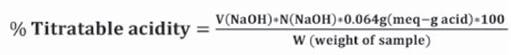 Titratable acidity of strawberry fruits was measured using the standard method 942.15 (37.1.37) of the AOAC (1996) determination for titratable acidity and using Equation 3.