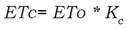 where: ET c = crop evapotranspiration (mm day-1), ET o = reference evapotranspiration (mm day-1), K c = crop constant.
