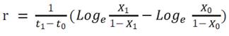 Dónde: r = tasa de desarrollo, t 1 = tiempo final, t 0 = tiempo inicial, X 1 = severidad final, X 0 = severidad inicial.