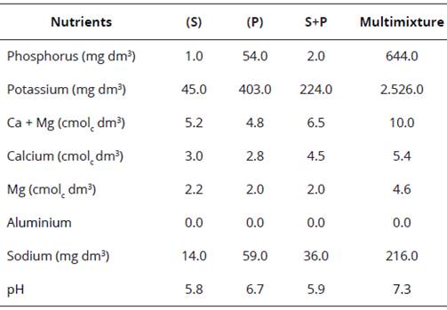 The maintenance of high soil quality indexes is a prerequisite for establishing the sustainability of any agricultural and/or forestry production system (Roverdderl et al., 2009). The quality of a forest based soil, such as the one used in this study, was confirmed by Cunha et al. (2003) when comparing the soil fertility with cultivated crops (wheat and corn), near and distant of native forest fragments and verified that the organic matter and calcium content was higher up to 10 m from the forest edge, reducing to the extent which increased the distance from the fragment.